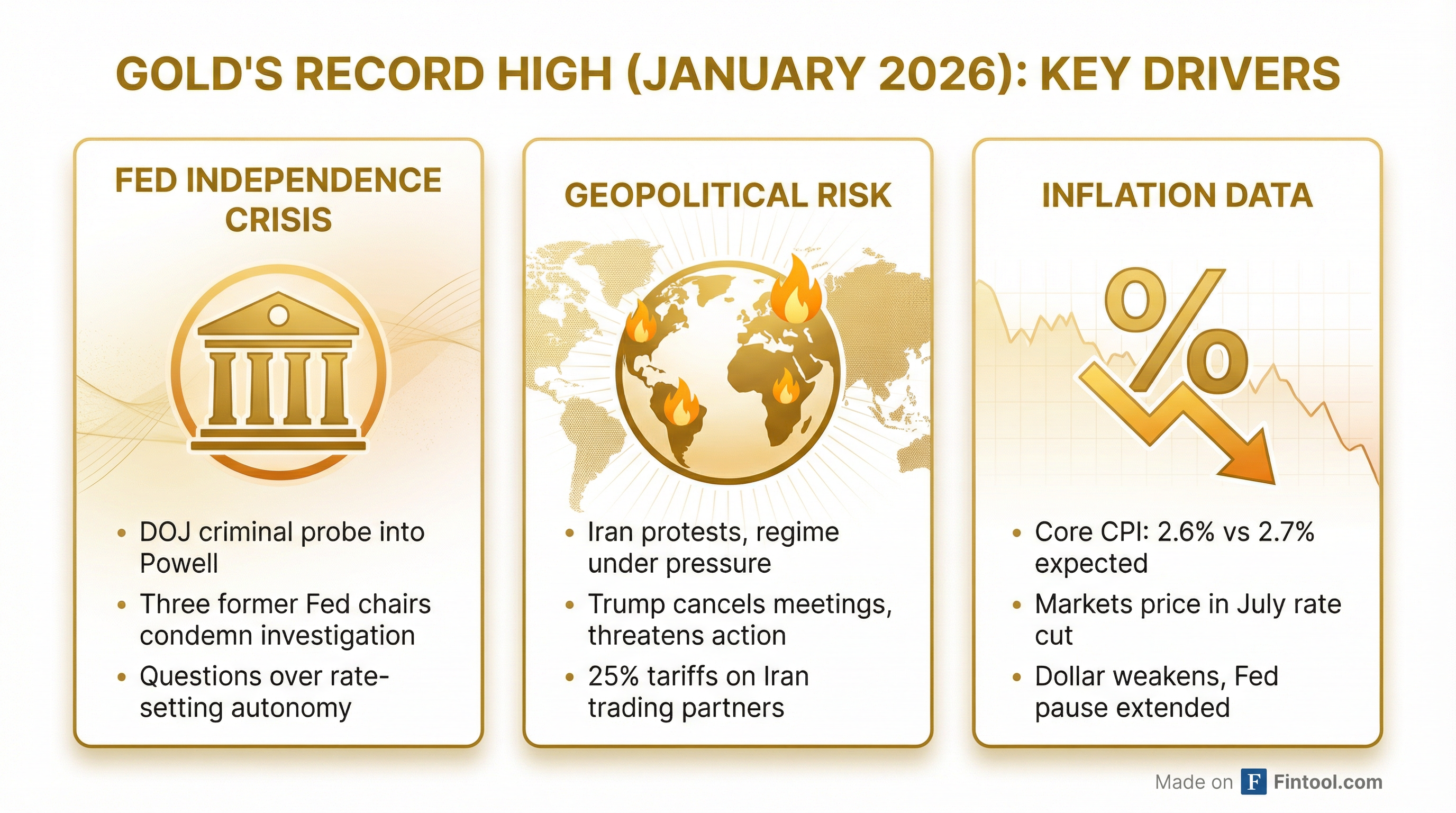 Adding to gold's momentum, December's core CPI came in cooler than expected at 2.6% year-over-year—below the 2.7% consensus—while headline inflation held steady at 2.7% .