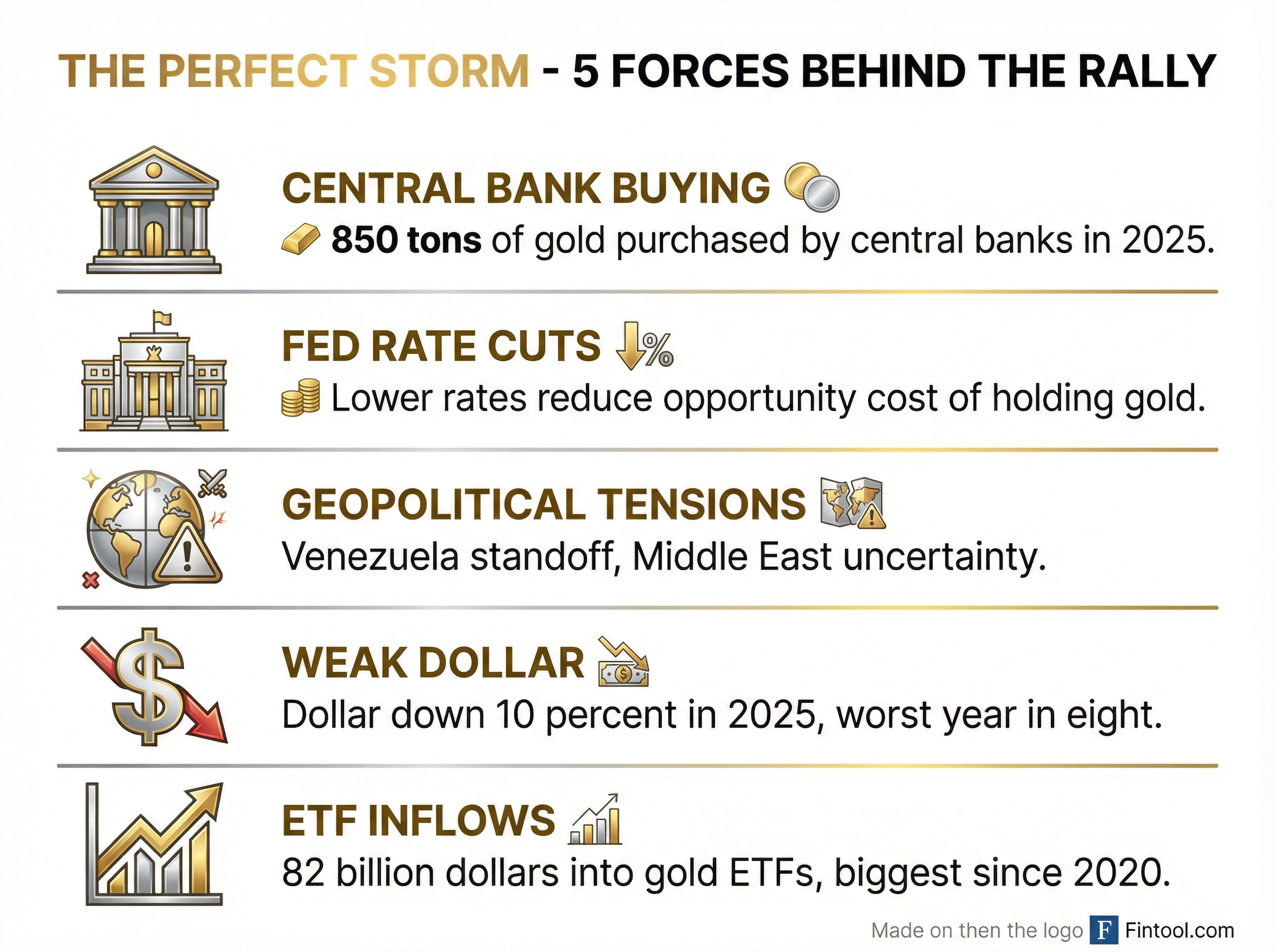 The Federal Reserve's December rate cut, combined with expectations for further easing in 2026, has weakened the dollar and reduced the opportunity cost of holding non-yielding assets like gold. The dollar index has slumped nearly 10% in 2025—its worst year in eight—and many investors expect the decline to continue .