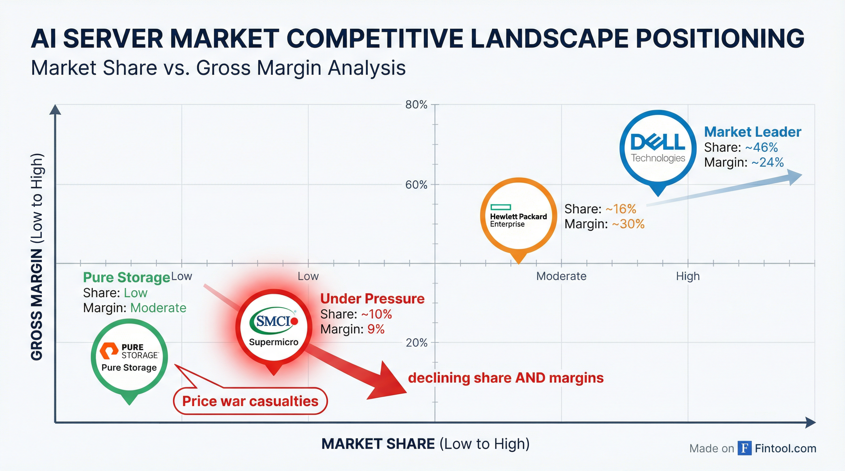 Dell commands roughly 46% of the broader server hardware market versus Super Micro's 10%, and it has weaponized that scale advantage in AI infrastructure. As one analyst noted, Dell "has used its deep pockets to undercut prices" while maintaining margins in the low-20% range—more than double Super Micro's current levels.