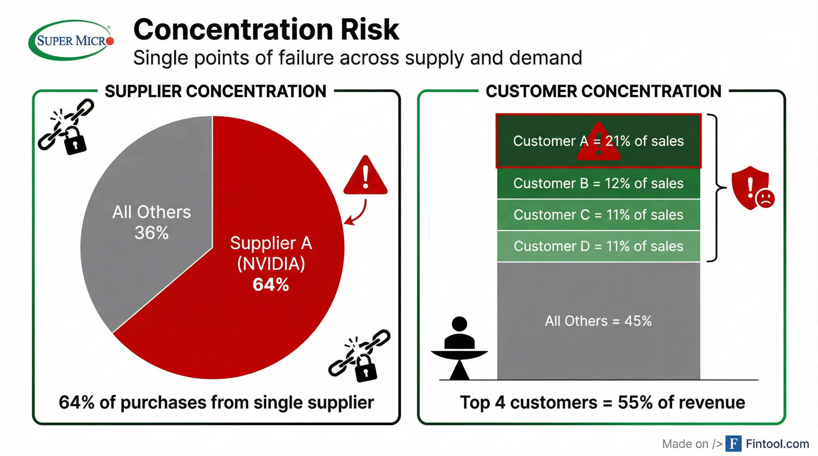 Supplier Concentration: One supplier—almost certainly NVIDIA—accounted for 64.4% of Super Micro's total purchases in fiscal 2025, up from 30.7% just two years earlier. This dependency limits Super Micro's negotiating power and exposes it to supply chain disruptions.