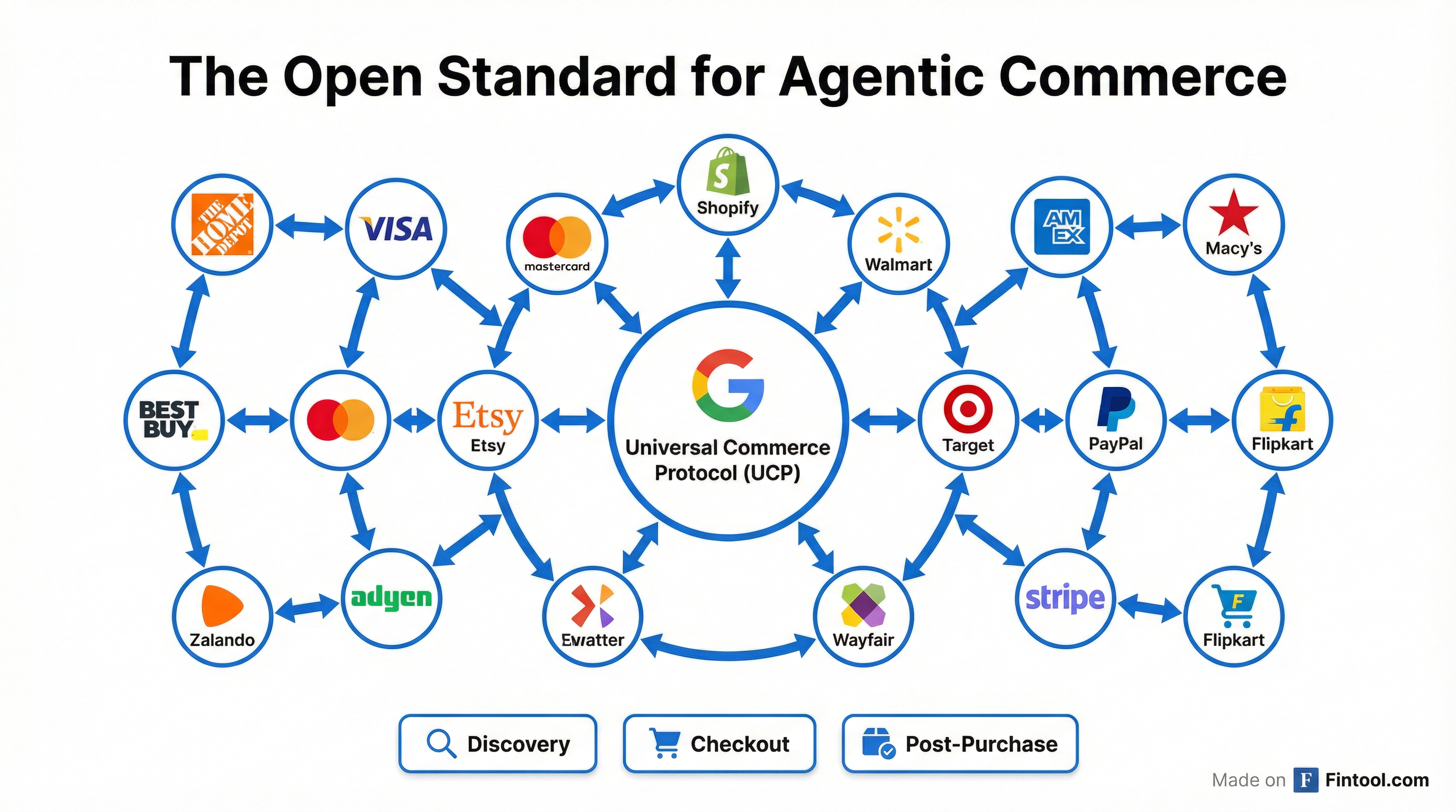 Alphabet+0.96% unveiled the Universal Commerce Protocol (UCP) at the National Retail Federation's Big Show in New York, an open standard designed to transform AI assistants into fully functional shopping agents. Co-developed with Shopify-2.26%, Etsy+1.06%, Wayfair+2.19%, Target-0.76%, and Walmart+1.29%, and endorsed by over 20 global companies, the protocol positions Google at the center of an emerging "agentic commerce" ecosystem—and directly challenges OpenAI's push into retail.