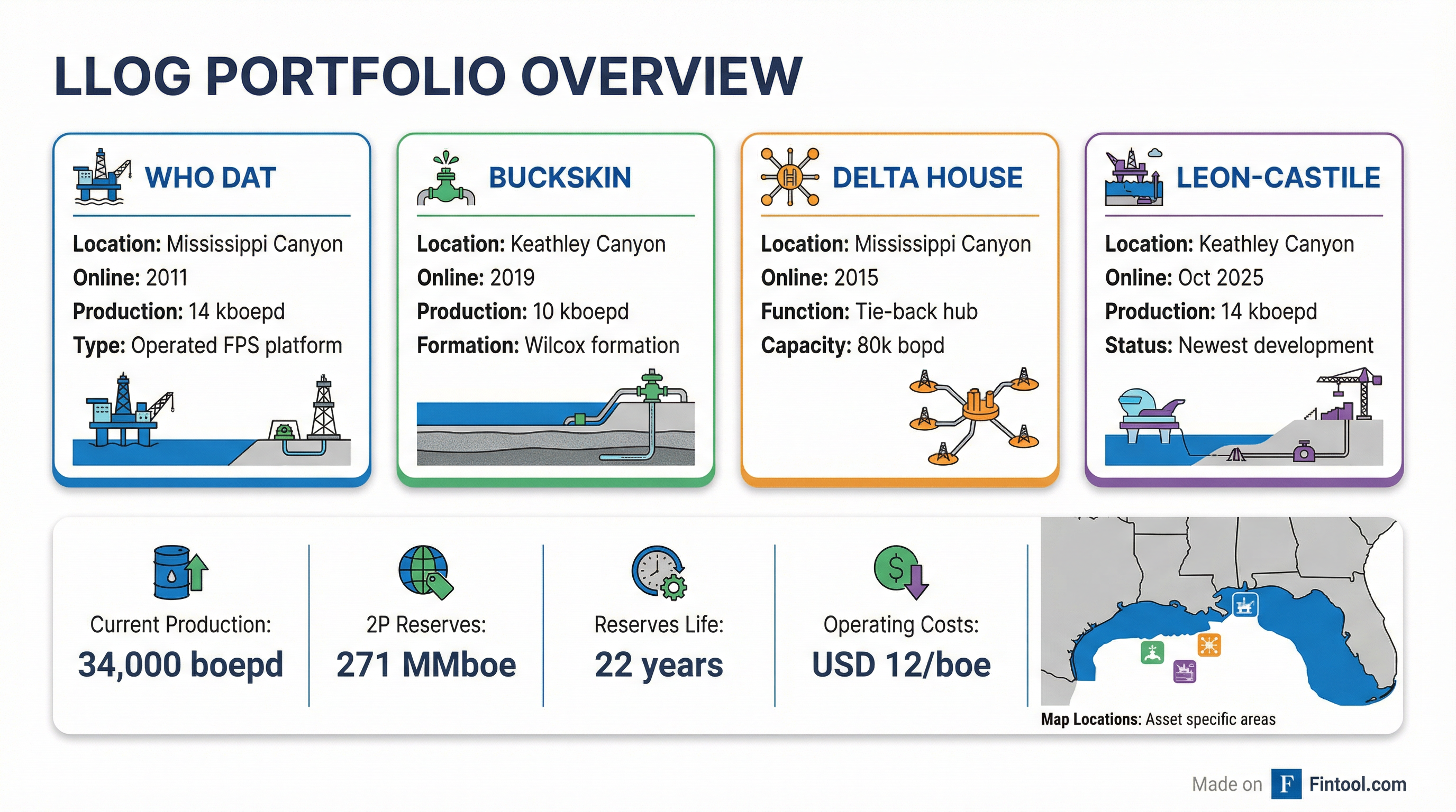 Production ramp: With Leon-Castile just online in October 2025 and additional wells planned at Buckskin, investors should monitor whether LLOG achieves its target of doubling production by 2028.