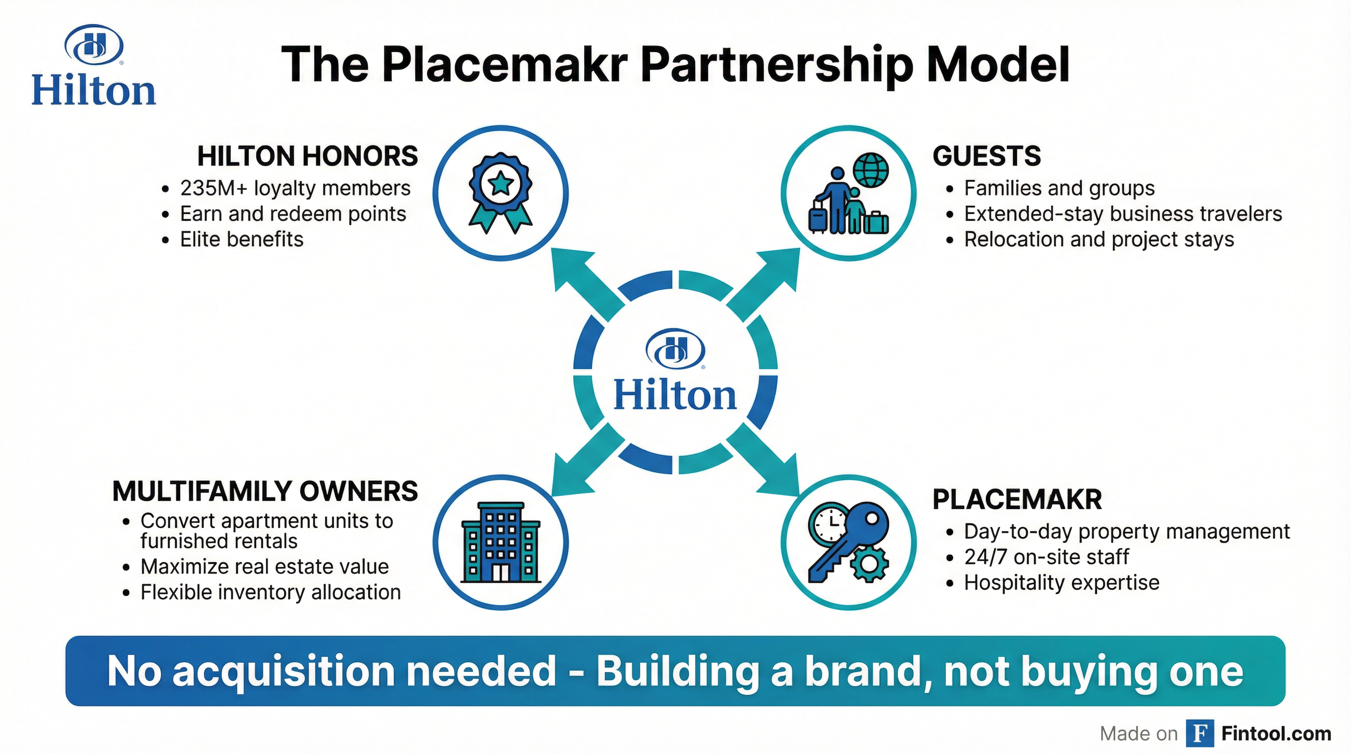 - Hilton provides brand standards, distribution, and loyalty integration