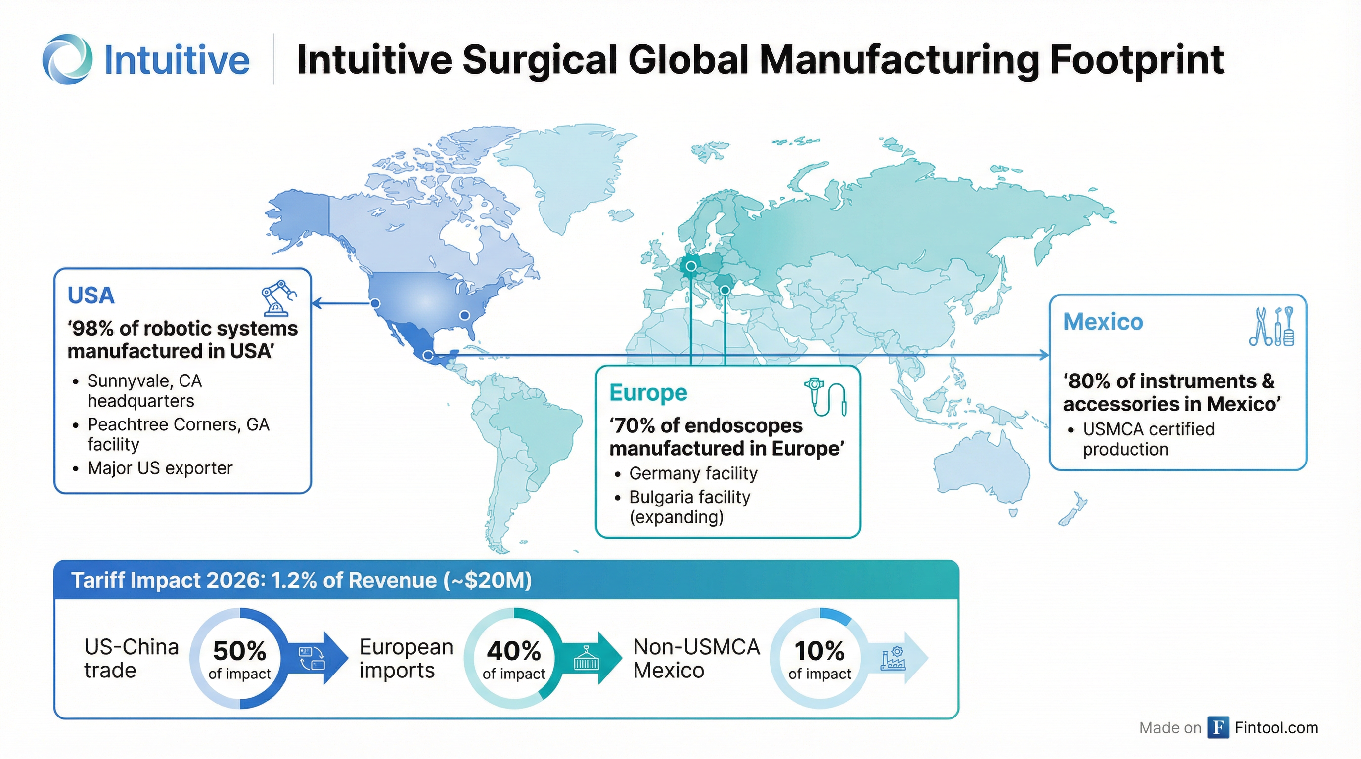 European Imports (~40% of impact): Seventy percent of Intuitive's endoscopes are manufactured in Germany, subject to 10% baseline tariffs with potential increases after the current pause period ends .