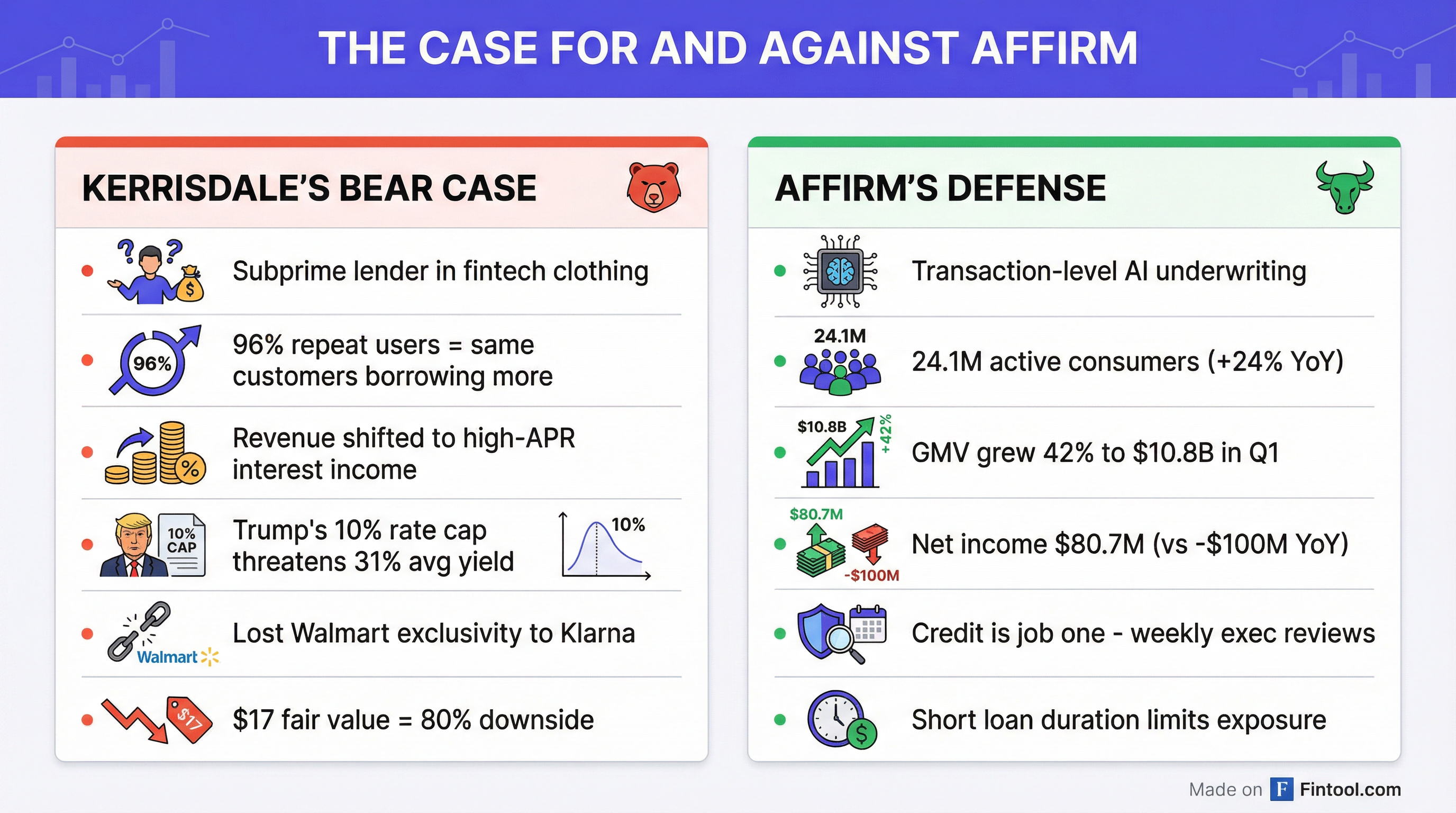Regulatory Overhang: President Trump's recent call to cap credit card interest rates at 10% has placed Affirm's average loan yield of 31% "under immediate and intense scrutiny." Any legislative action extending such caps to BNPL providers could be existential for the model.