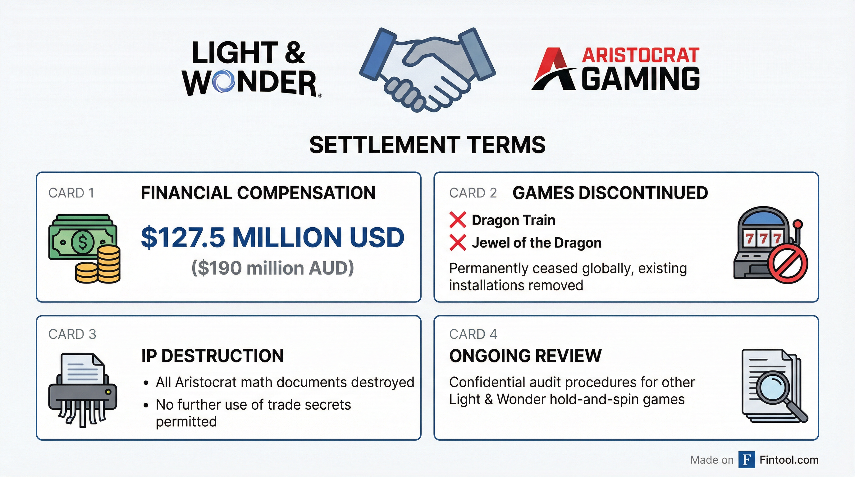 "Light & Wonder acknowledges that certain Aristocrat math information was used in connection with the development of both Dragon Train and Jewel of the Dragon," the companies said in a joint statement .
