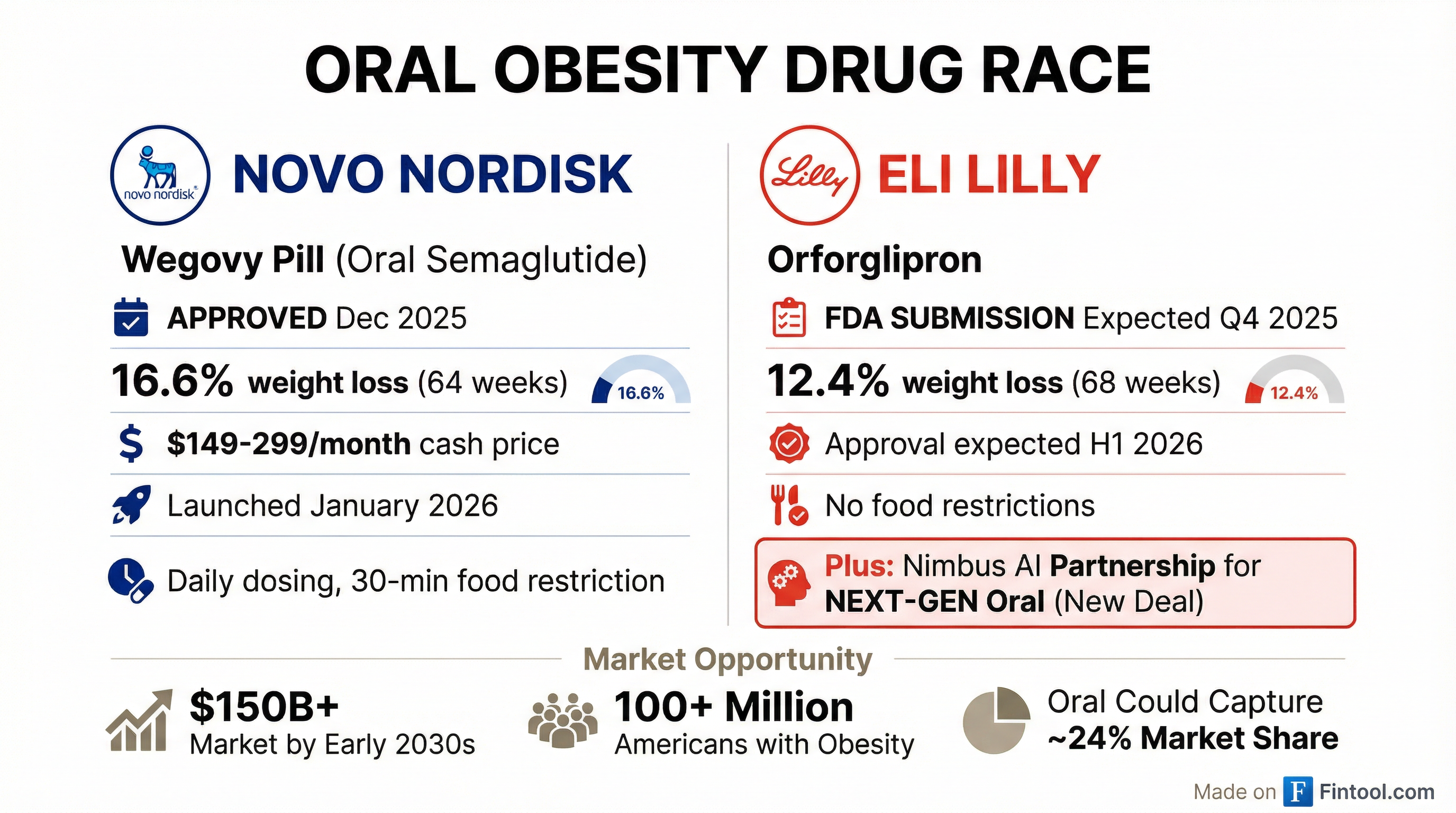 The timing is telling. Novo Nordisk's+2.56% Wegovy pill launched Monday at U.S. pharmacies—starting at $149/month for the lowest dose—giving the Danish drugmaker an early mover advantage in oral obesity treatment.