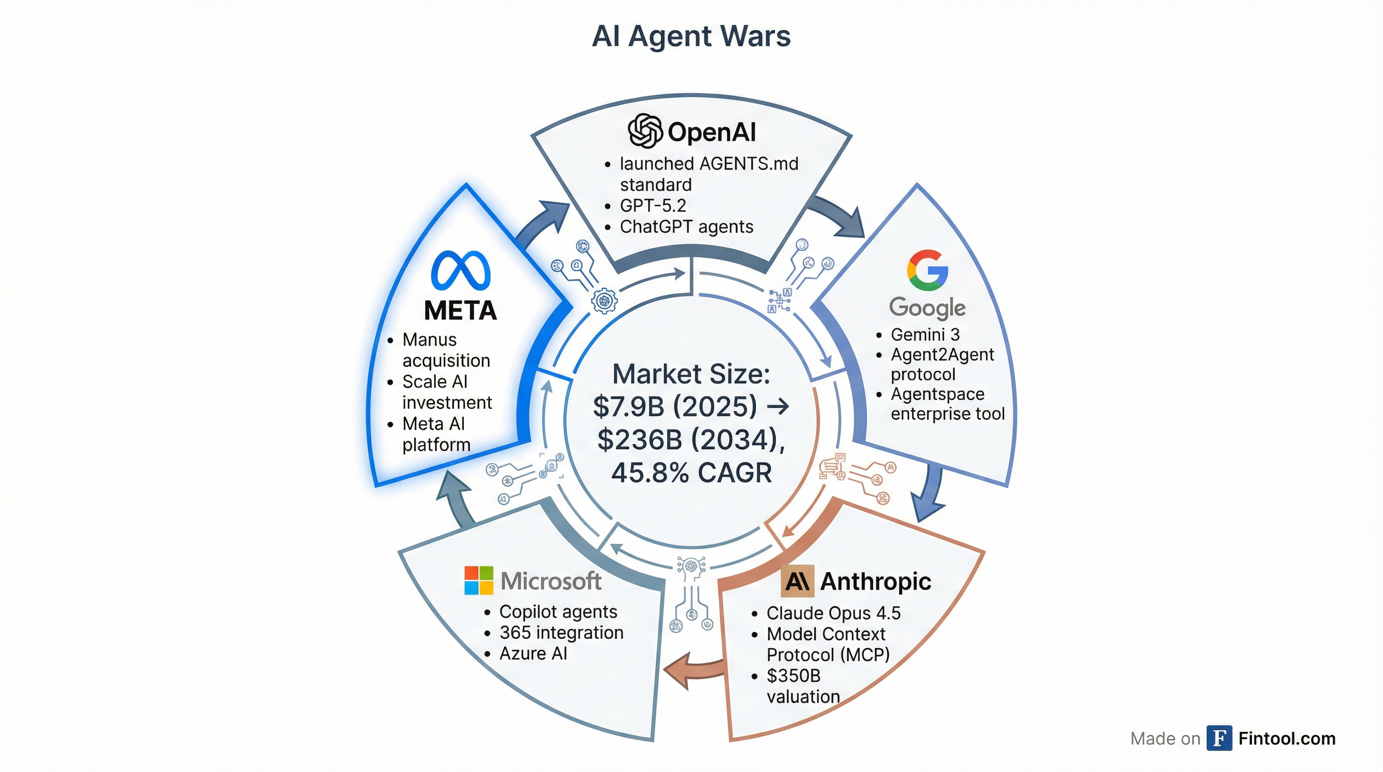 The acquisition comes as AI agents emerge as the next major battleground in artificial intelligence. The global AI agent market, valued at $7.9 billion in 2025, is projected to reach $236 billion by 2034—a 45.8% compound annual growth rate.