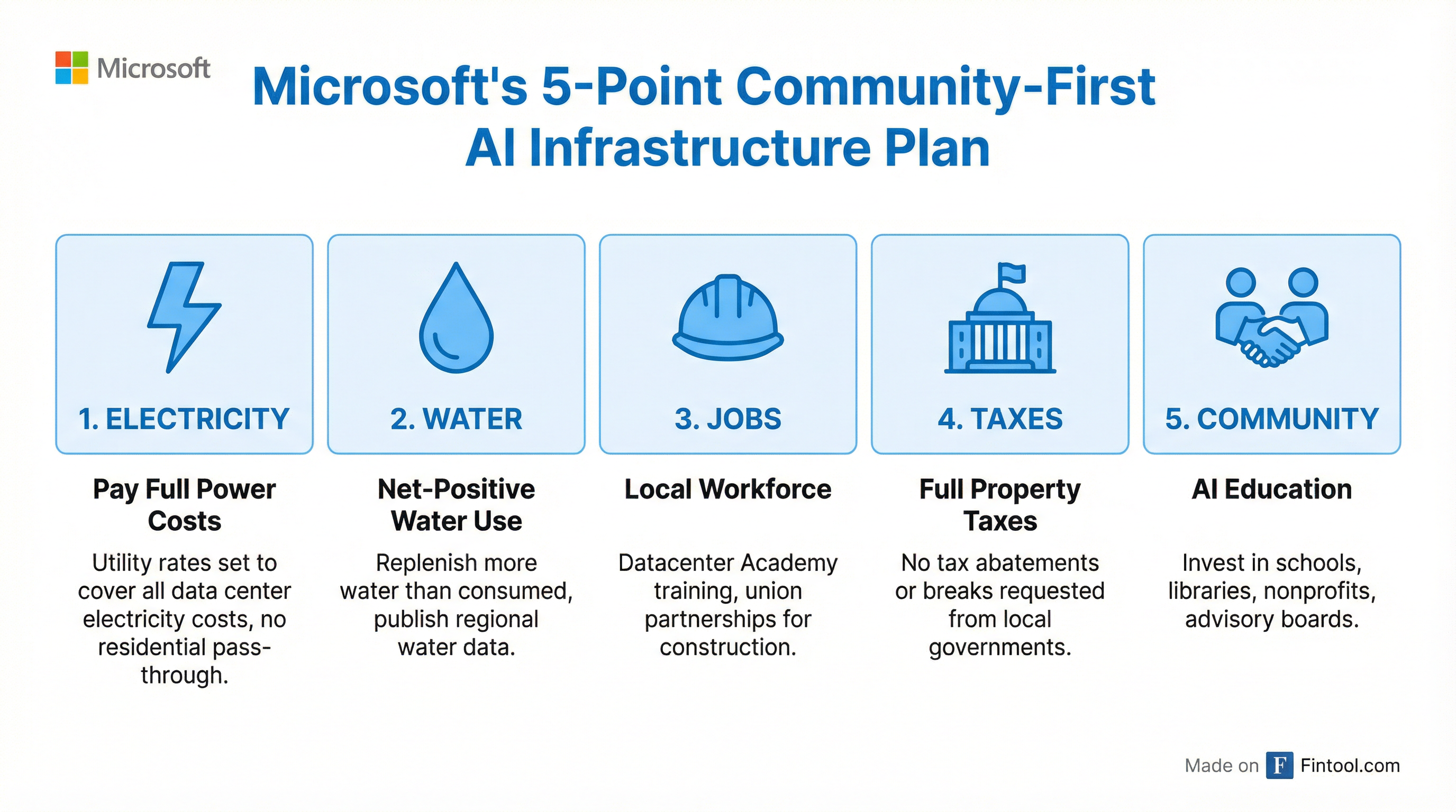 Microsoft's initiative includes five concrete commitments designed to address the most common community concerns around data center development: