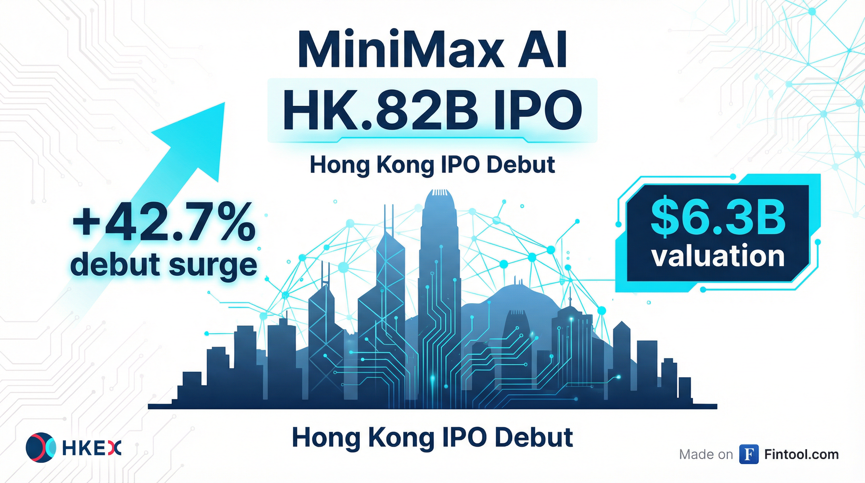 MiniMax's debut caps an extraordinary week for Hong Kong's AI listings. On Thursday, three Chinese tech firms—Zhipu AI, Shanghai Iluvatar CoreX, and Shenzhen Edge Medical—all traded above their offer prices after raising a combined $1.19 billion.