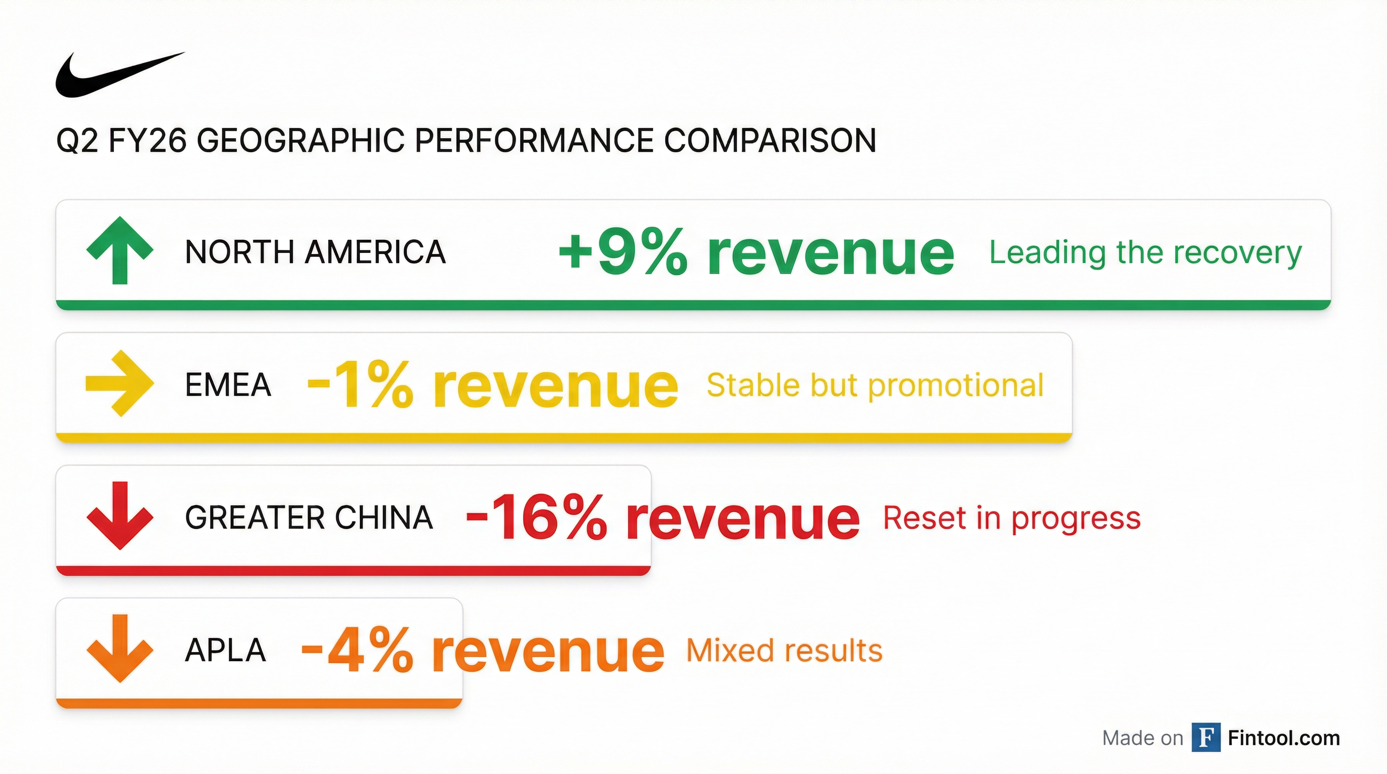 - Portfolio diversification: Right-sizing classic franchises (down $4B from peak) while scaling performance categories like Running (+20%)