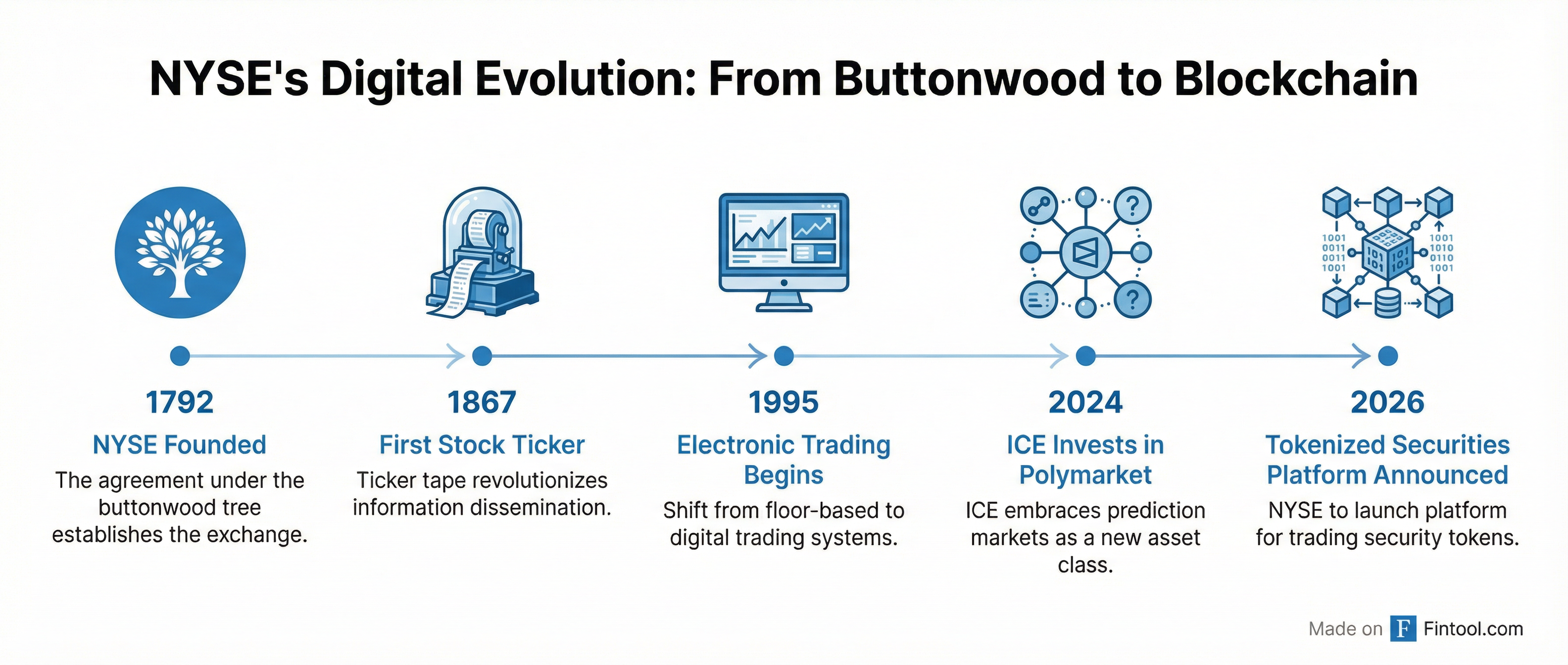 The tokenized securities platform builds on ICE's broader digital strategy. In October 2025, the company announced a strategic investment commitment of up to $2 billion in prediction market platform Polymarket, signaling its intent to expand beyond traditional exchange infrastructure.