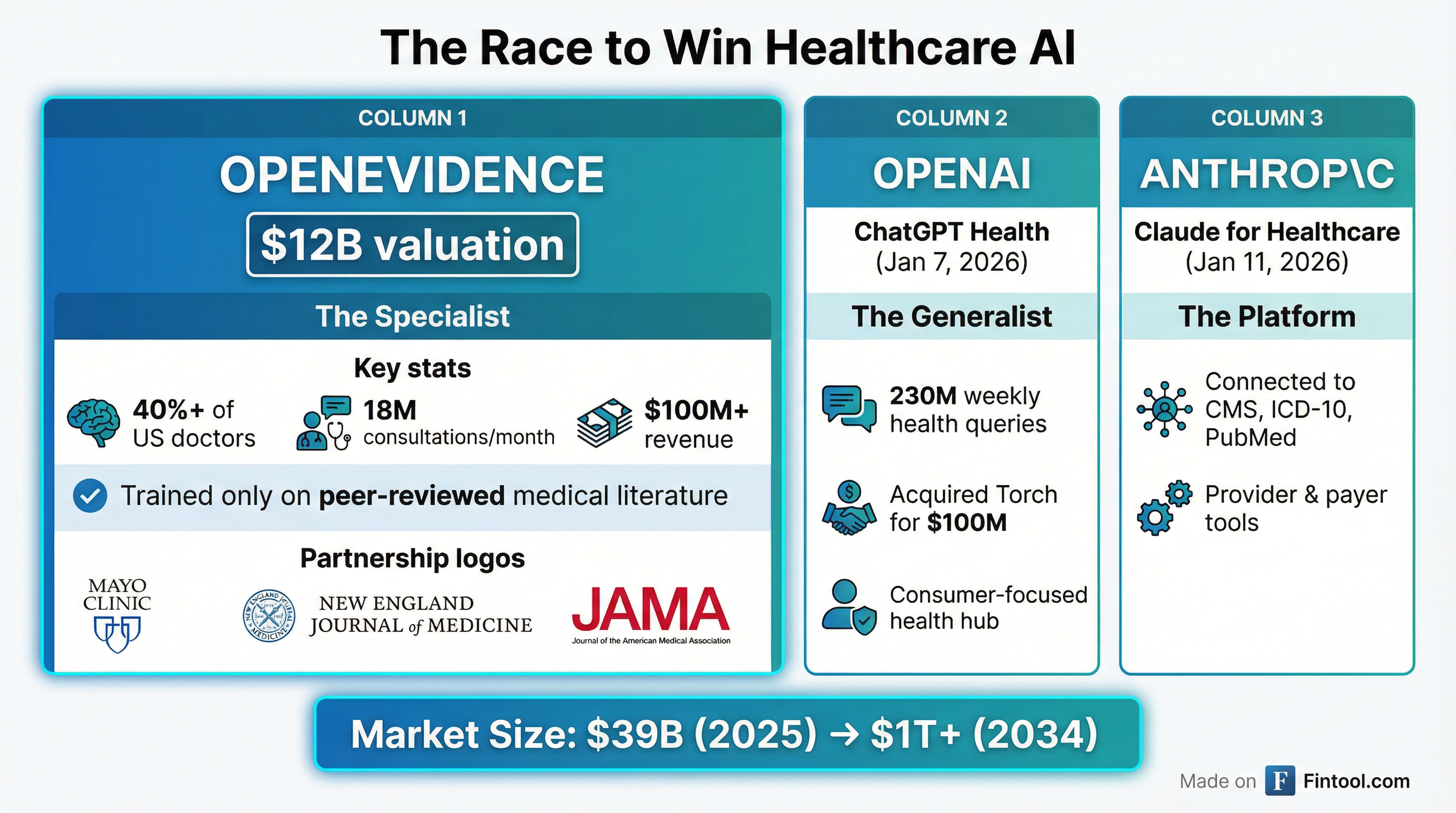 The timing of OpenEvidence's mega-round is no coincidence. The AI giants have made aggressive moves into healthcare this month: