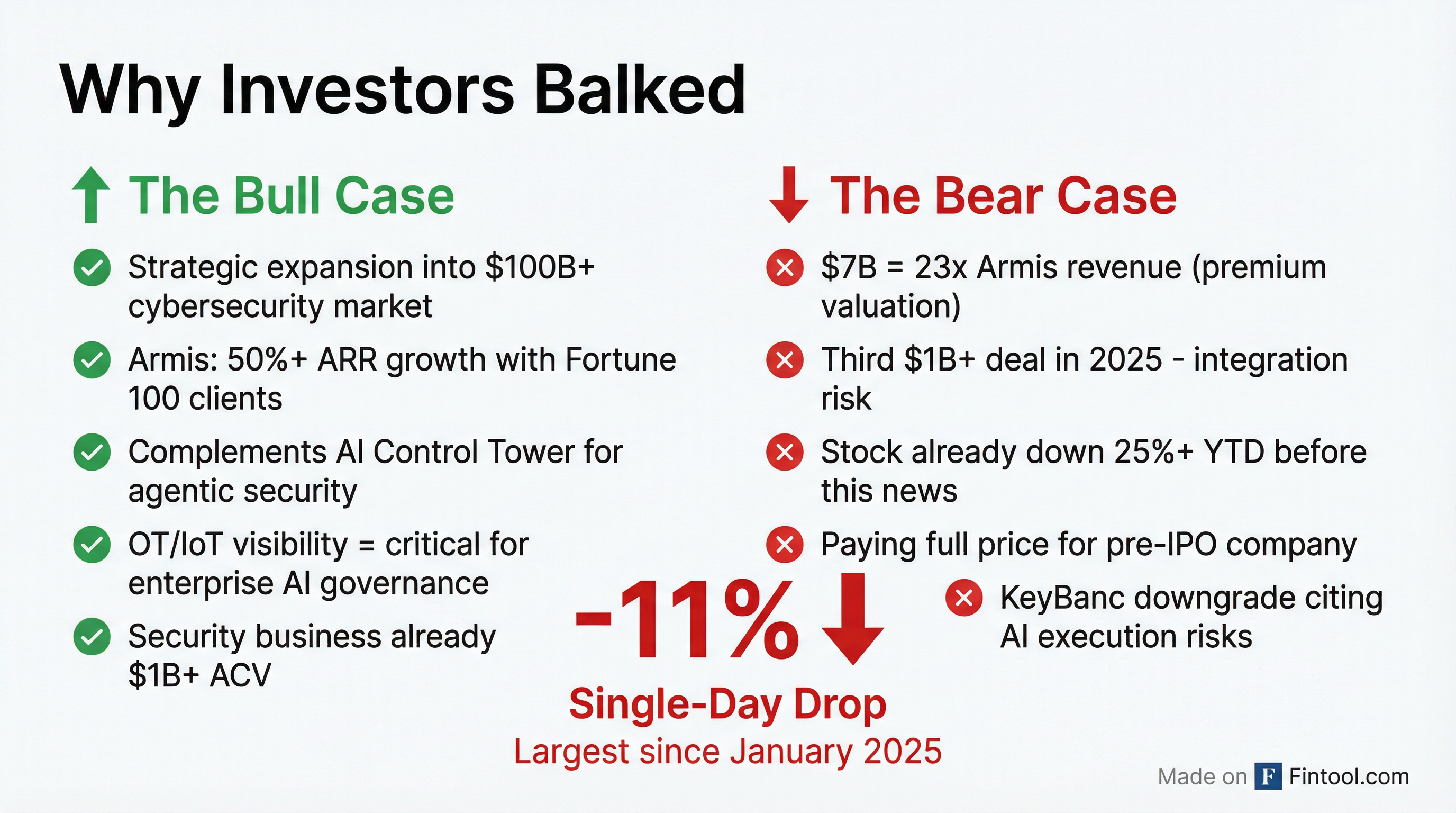 Valuation concerns: At 23x revenue, ServiceNow is paying a full IPO-level price for Armis—potentially leaving little upside for ServiceNow shareholders even if the integration succeeds.