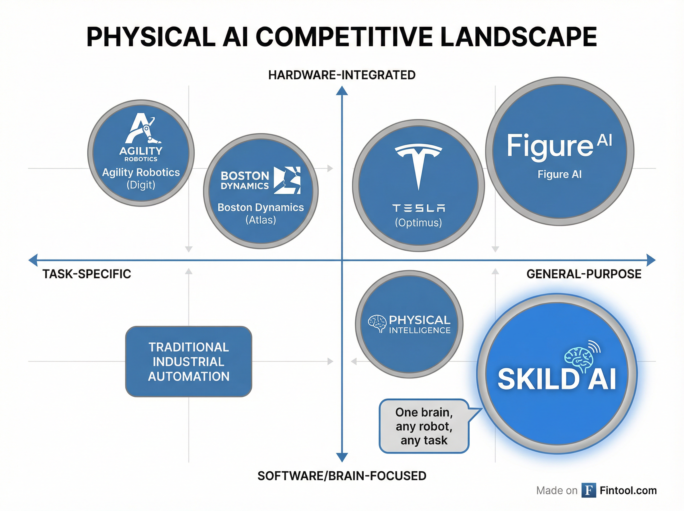 What differentiates Skild is its hardware-agnostic approach. Rather than building robots, it builds the brain that can run any robot—potentially making it a picks-and-shovels play in a market where hardware is commoditizing.