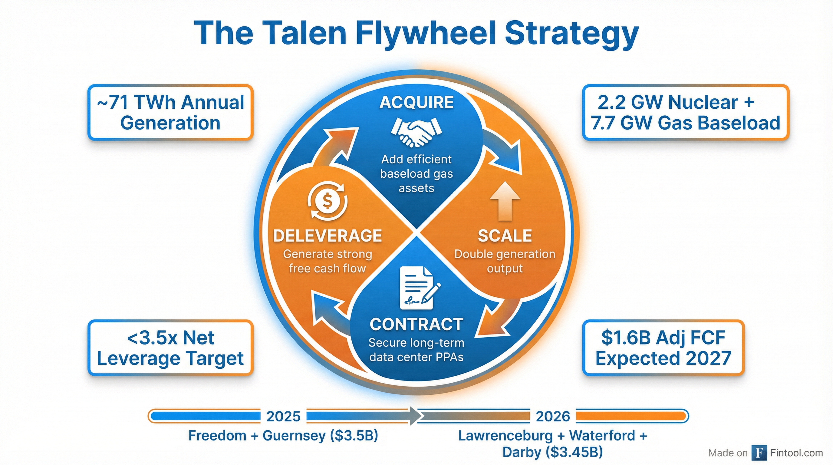 The strategic logic is clear: baseload gas plants with 80%+ capacity factors generate steady cash flows that can be used to pay down debt, fund share buybacks, and pursue additional acquisitions. Talen's board approved a $2 billion share repurchase program in September 2025, which the company can continue executing while maintaining its target of sub-3.5x net leverage by year-end 2026.