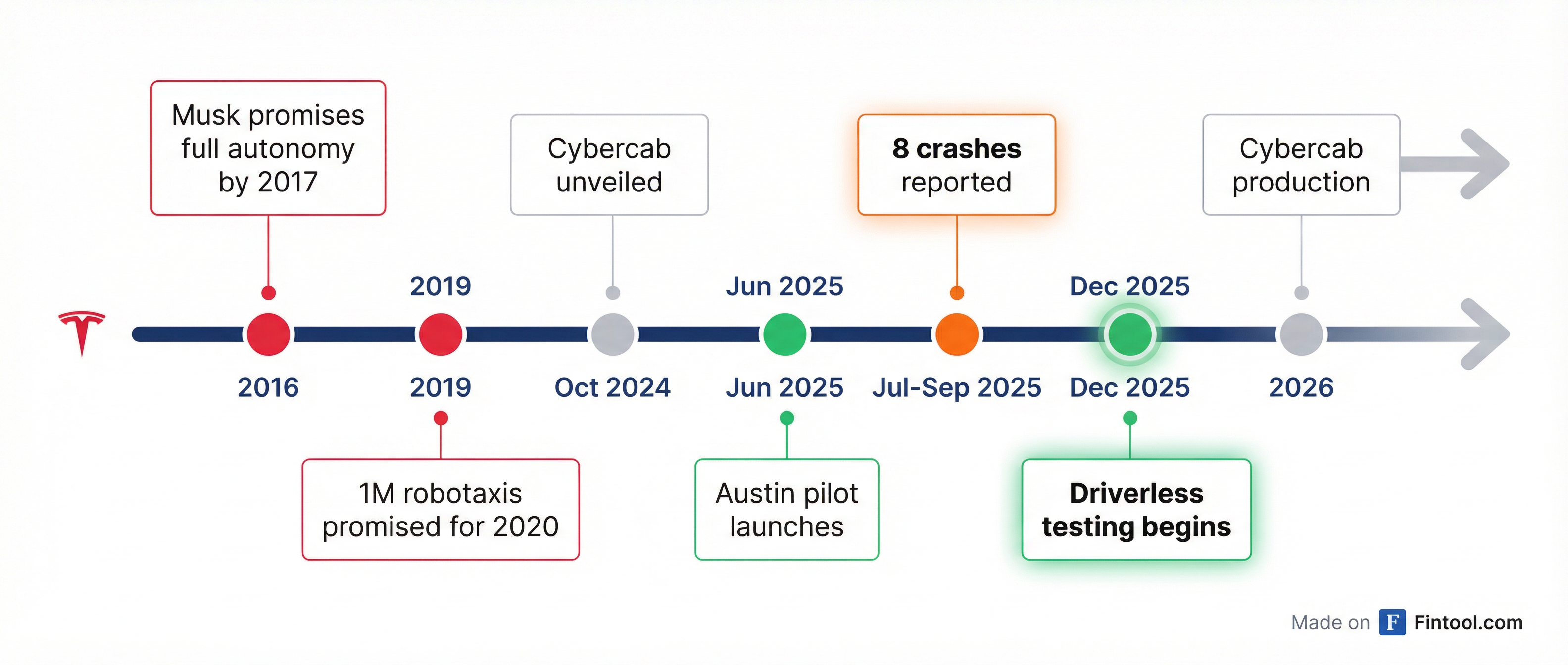 Tesla's move to driverless testing is a genuine milestone—and a promise delivered, for once, on schedule. For investors who've bet on Tesla's autonomy narrative, it's validation that progress is being made.