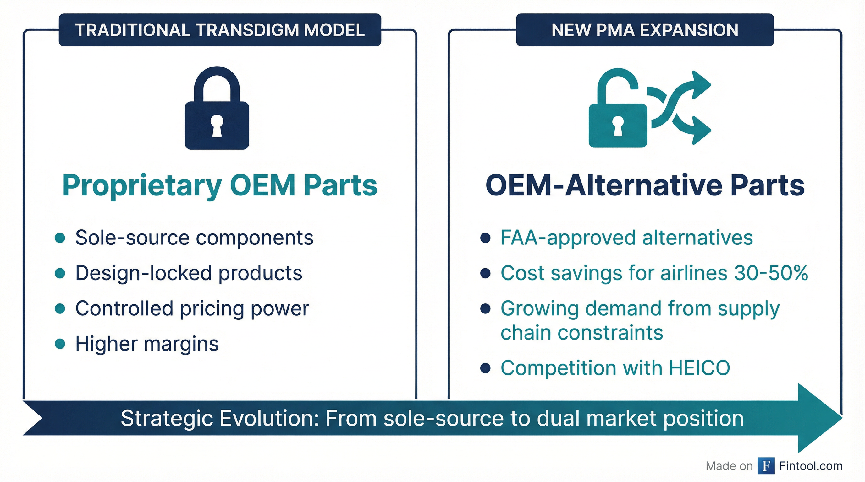 The entry into PMA puts TransDigm on a collision course with HEICO, the $42 billion market cap specialist that has dominated the space. HEICO's Flight Support Group generates the majority of its revenue from PMA parts and repair services.