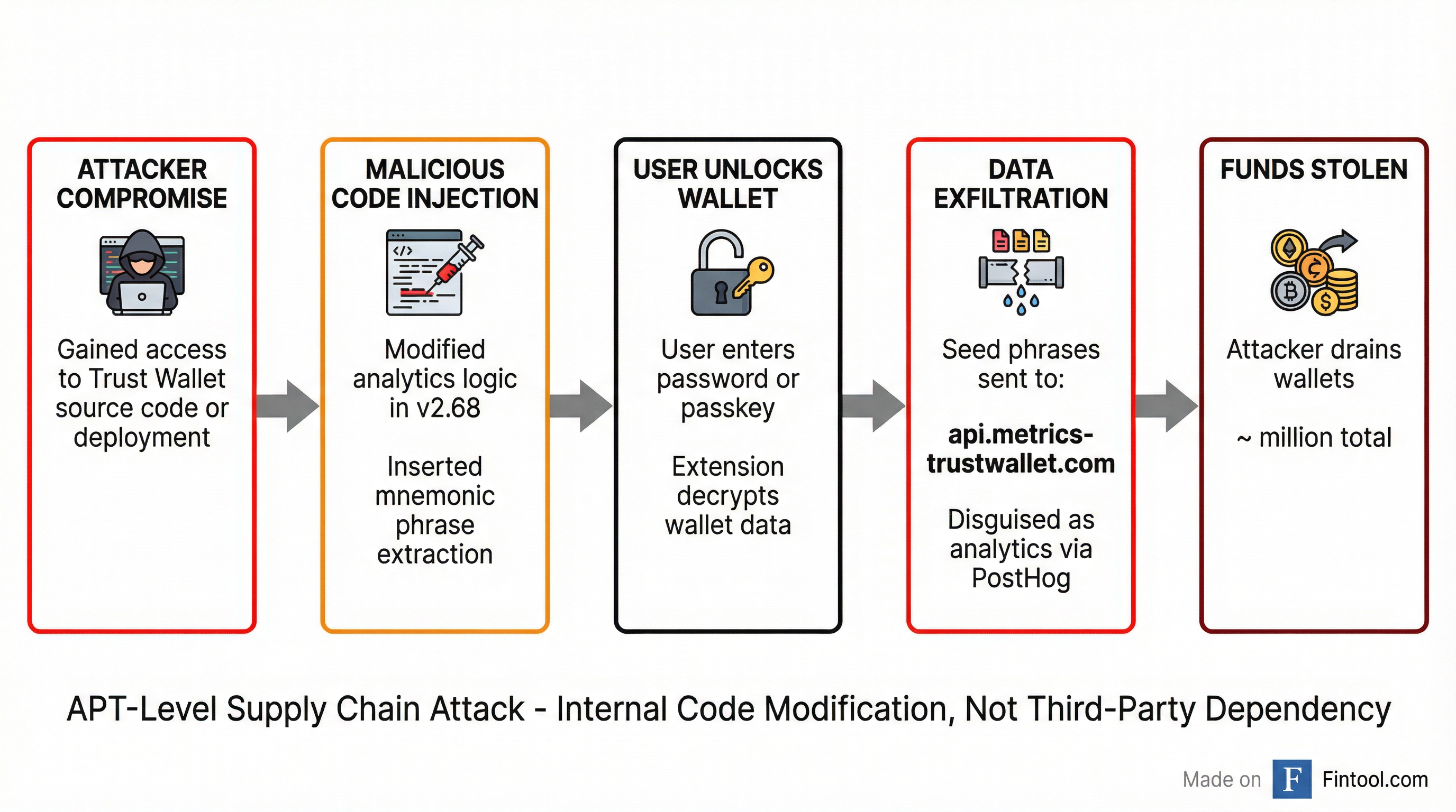 SlowMist's analysis raises a troubling implication: the attacker "may have already gained control of Trust Wallet-related developer devices or publishing-deployment permissions prior to December 8."