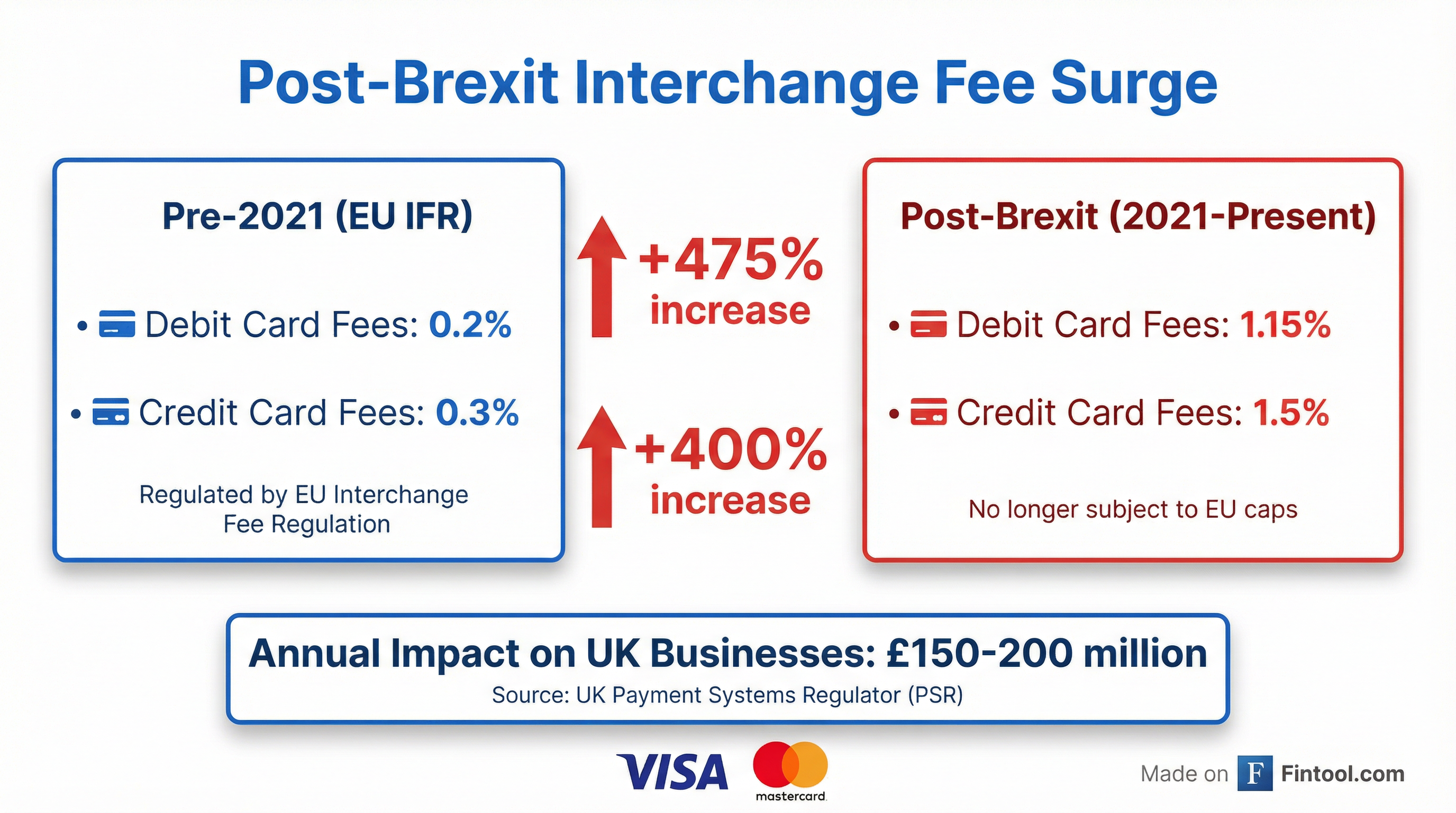Beyond interchange, the PSR is also conducting a separate market review into scheme and processing fees—the fees card networks charge directly to acquirers—which could result in additional regulatory constraints on Visa and Mastercard's UK business.