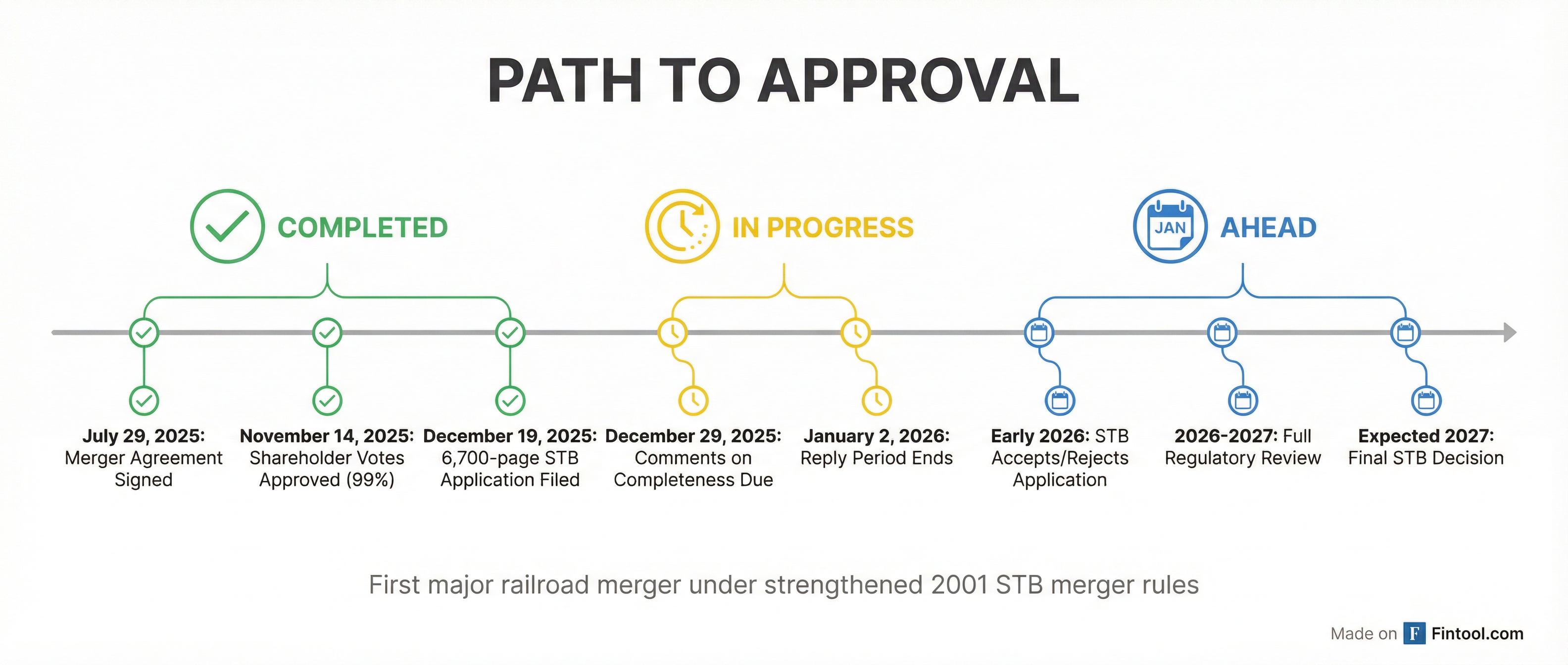 The agency has set December 29, 2025 as the deadline for comments on the completeness of the application, with Union Pacific and Norfolk Southern able to reply by January 2, 2026. If the STB accepts the application as complete, a full review will follow with a decision expected in 2027.