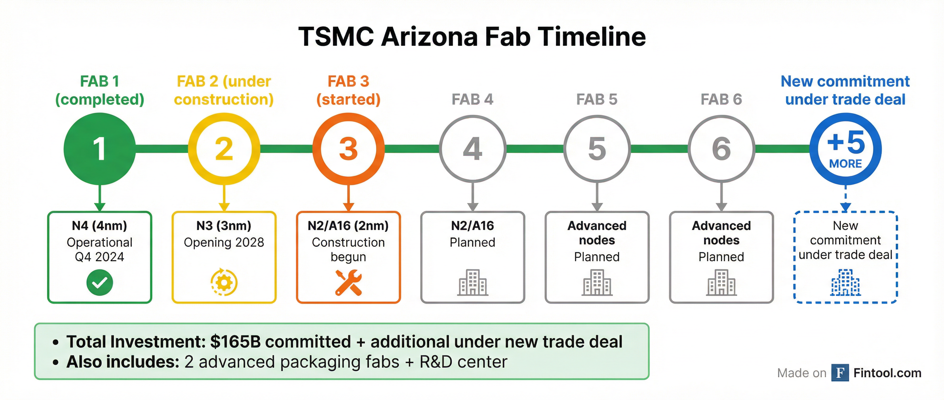 - Timeline for additional fabs: The agreement commits TSMC to 5+ more facilities, but the construction and ramp schedule will depend on customer demand