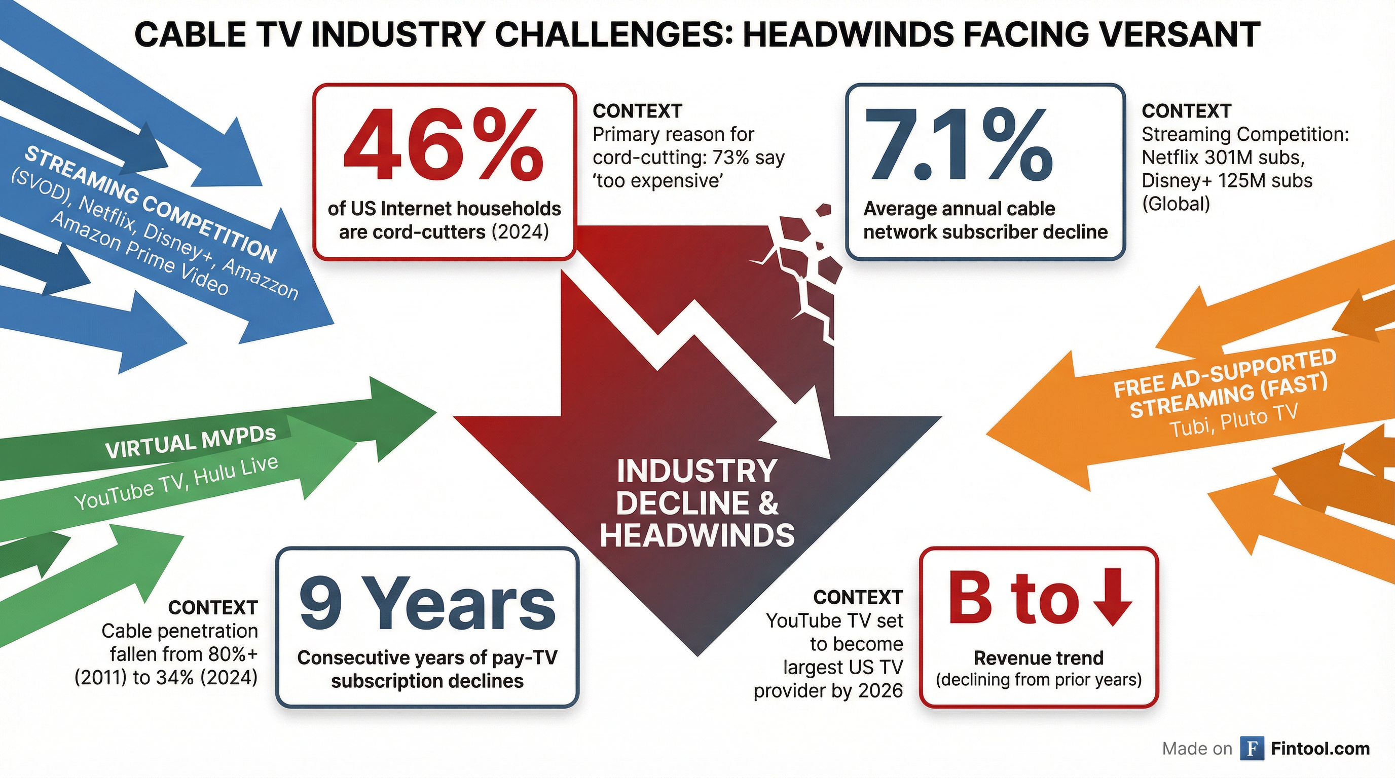 - Accelerating cord-cutting: Every cable bundle cancellation hits multiple Versant networks