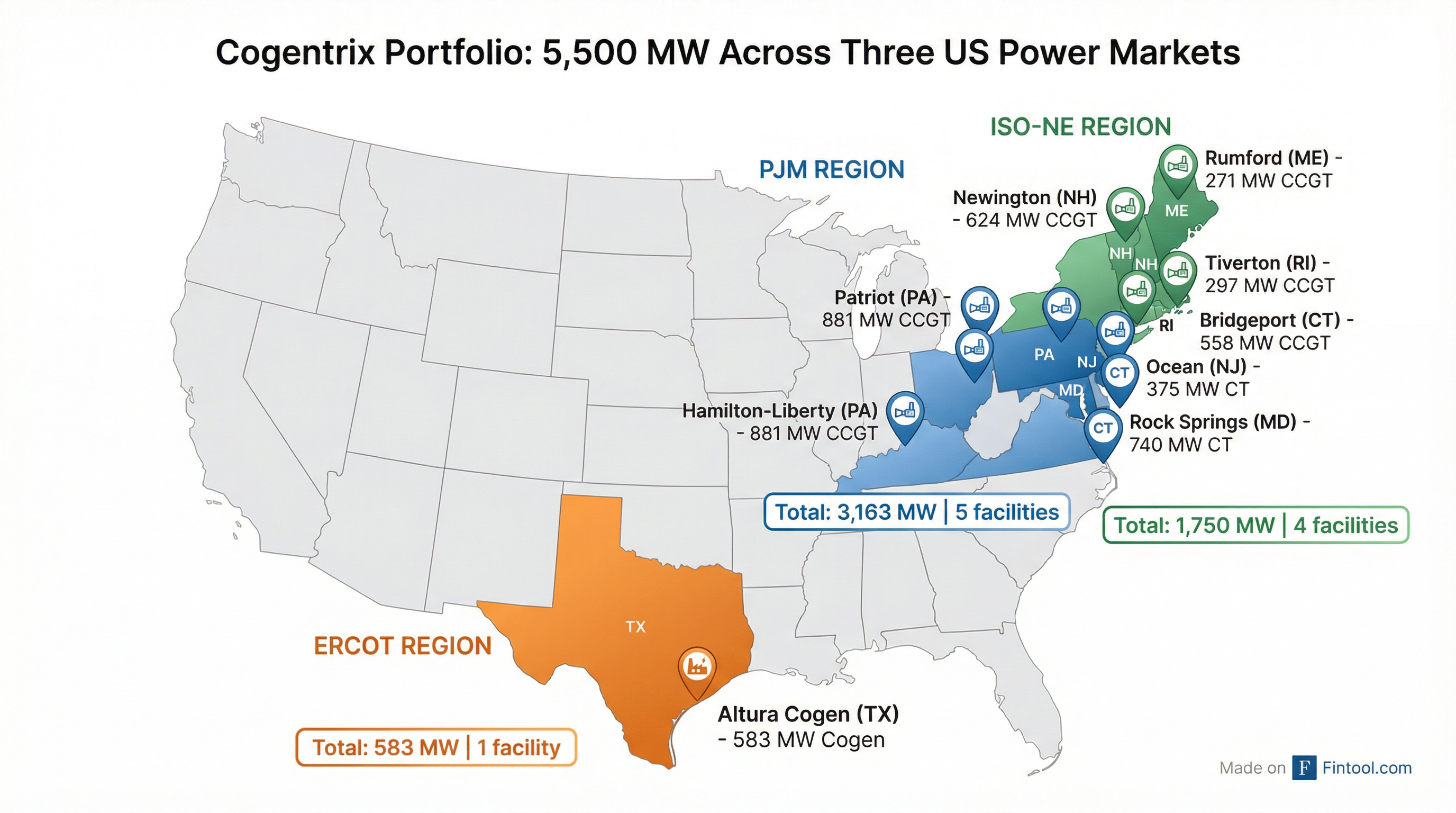 ISO New England (4 plants, 1,750 MW): The region's grid operator has warned of reliability risks as aging generators retire. Vistra gains combined-cycle plants in New Hampshire, Connecticut, Rhode Island, and Maine.