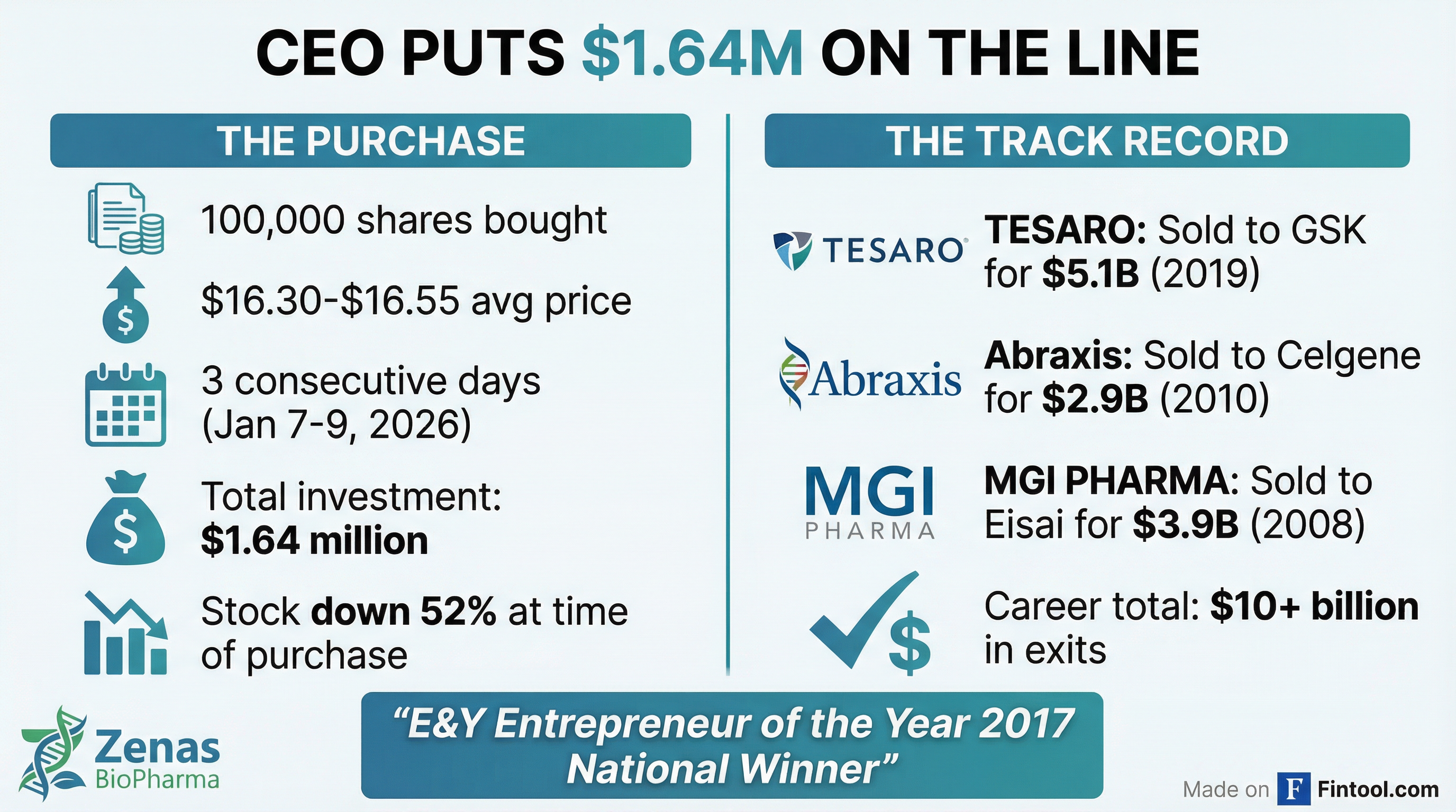 For Moulder, the playbook is familiar: buy undervalued biotech assets, execute on development, and create value. He's done it three times before for a combined $10 billion. ZBIO shareholders are betting he can do it again.